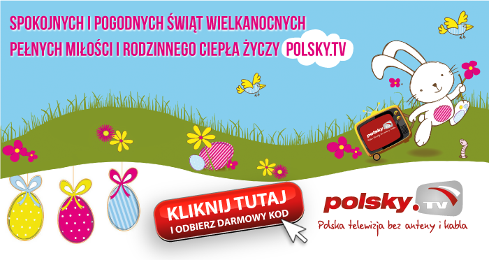 Żółte kurczęta, kolorowane pisanki, zajączki — zwykłe symbole Wielkanocy. Dodaj do nich telewizję Polsky.TV z nową ofertą!Dostań -20% na wszystkie towary!*Poczuj wiosnę z nastąpieniem Wielkanocy i z telewizją Polsky.TV!