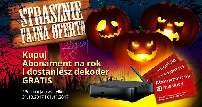Ceny na abonamenty* już przestraszyły się i dlatego na Halloween masz możliwość wykupić telewizję Polsky.TV z obniżką -30%! Miej na myśli, że oferta działa do 01.11 — zdąż złapać swoją szansę przed zakończeniem promocji.